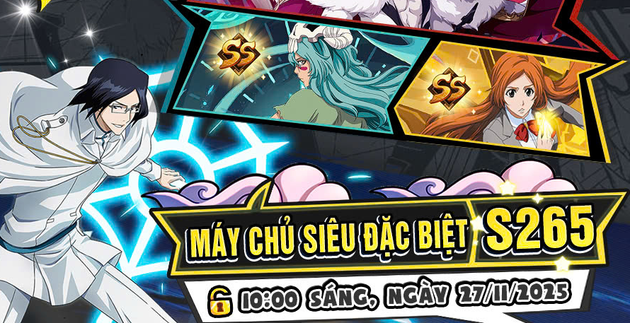 Máy Chủ S265 – Bleach Online chính thức khai mở lúc 10:00 ngày 27/11/2025.