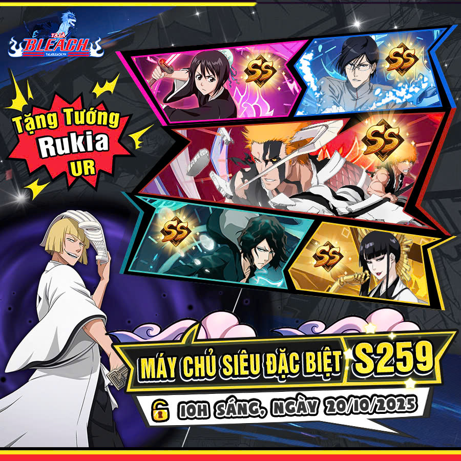 Máy Chủ S259 – Bleach Online chính thức khai mở lúc 10:00 ngày 20/10/2025.