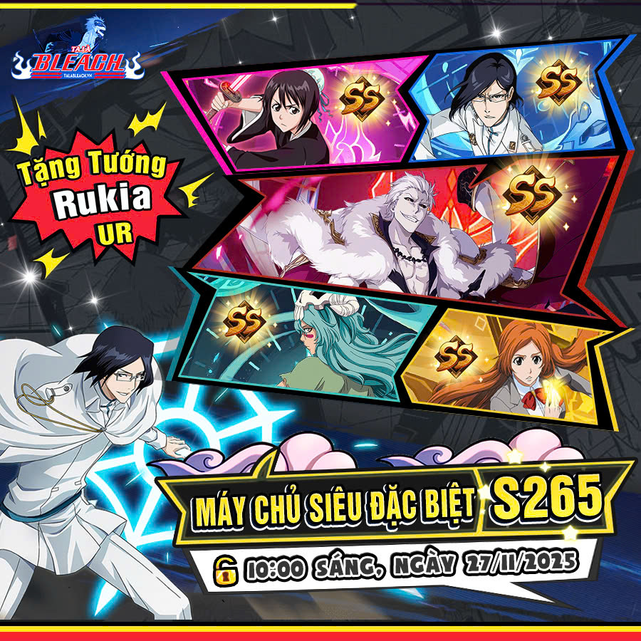 Máy Chủ S265 – Bleach Online chính thức khai mở lúc 10:00 ngày 27/11/2025.