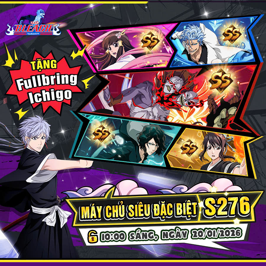 Máy Chủ S276 – Bleach Online chính thức khai mở lúc 10:00 ngày 20/01/2026.