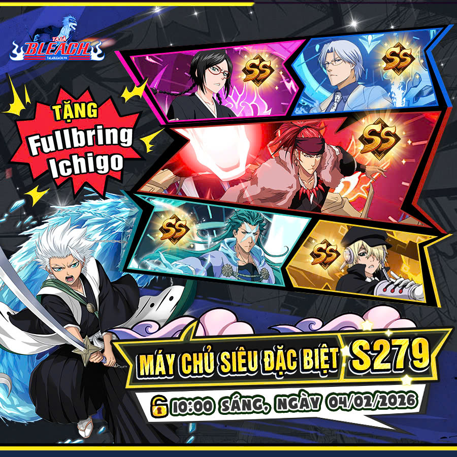Máy Chủ S279 – Bleach Online chính thức khai mở lúc 10:00 ngày 04/02/2026.