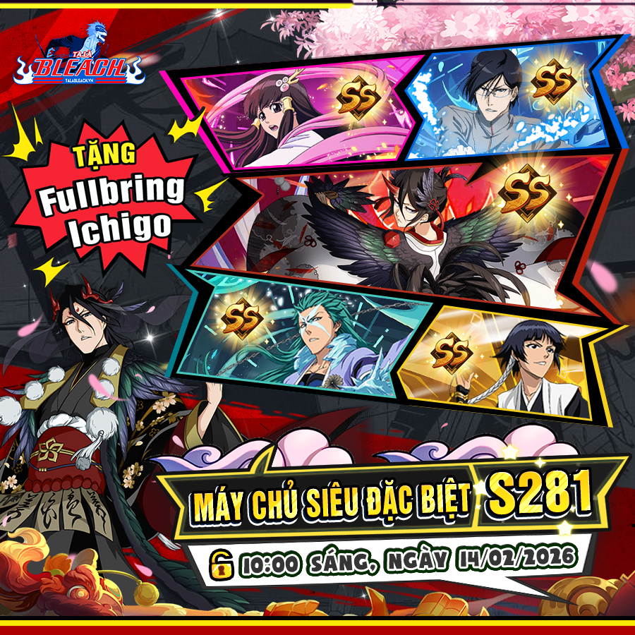 Máy Chủ S281 – Bleach Online chính thức khai mở lúc 10:00 ngày 14/02/2026.