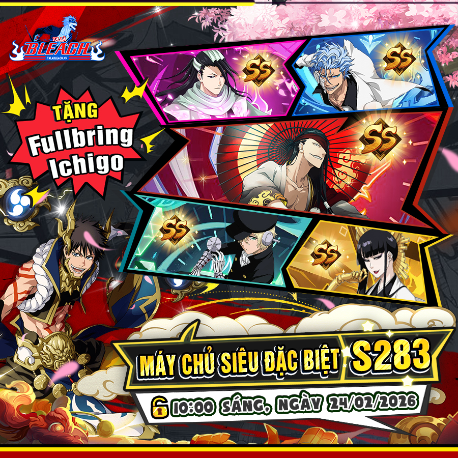 Máy Chủ S283 – Bleach Online chính thức khai mở lúc 10:00 ngày 24/02/2026.