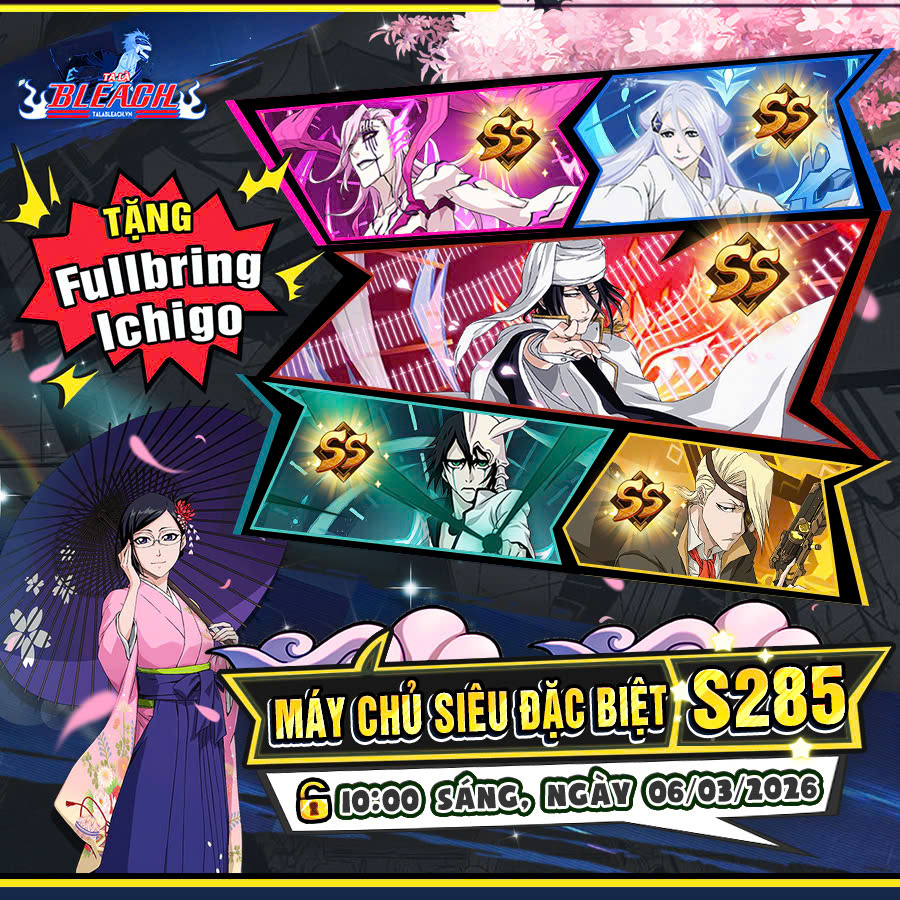 Máy Chủ S285 – Bleach Online chính thức khai mở lúc 10:00 ngày 06/03/2026.