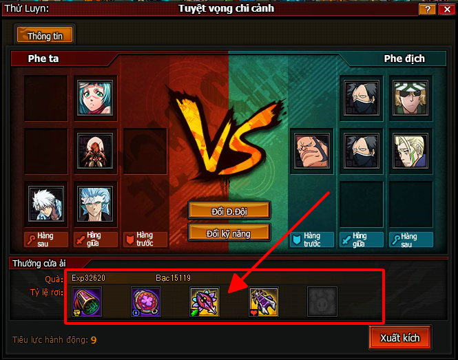+ Nhấp vào biểu tượng Chiếu đấu - Thử thách .