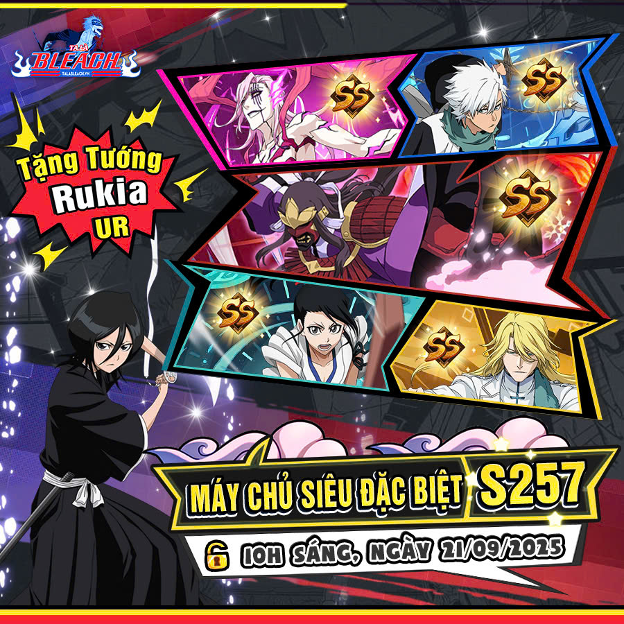 Máy Chủ S257 – Bleach Online chính thức khai mở lúc 10:00 ngày 21/09/2025.
