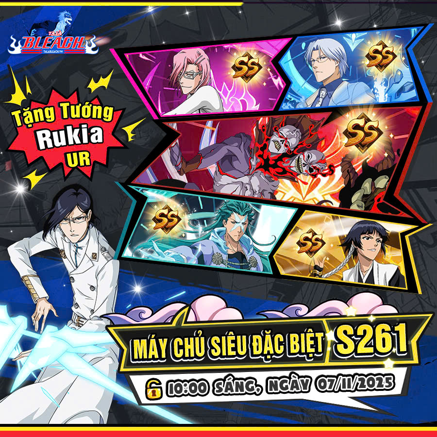 Máy Chủ S261 – Bleach Online chính thức khai mở lúc 10:00 ngày 07/11/2025.