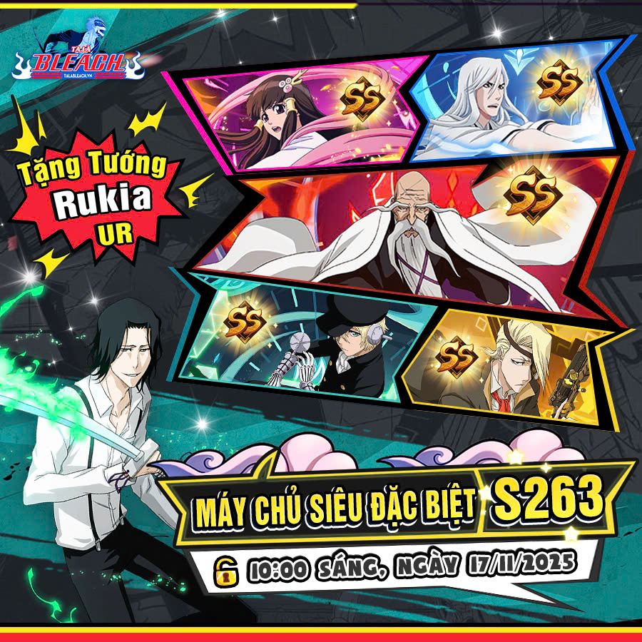Máy Chủ S263 – Bleach Online chính thức khai mở lúc 10:00 ngày 17/11/2025.