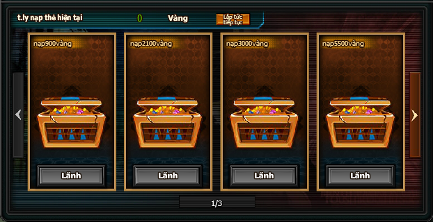 Trong thời gian sự kiện tích lũy Nạp đạt mốc mỗi ngày nhận lượng lớn Vàng, ngoài ra còn có thể dùng Vàng mua Quỹ Hoàn Trả Vàng