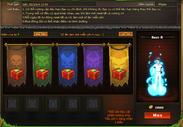 Trong thời gian sự kiện mỗi ngày người chơi có thể nhận được các mảnh Liệt Hỏa, Lôi Thần, Viêm Ma dùng để đổi các trang bị hiếm